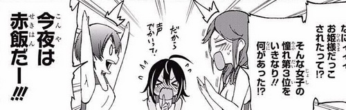 พวกเพื่อนร่วมชมรมที่รู้วีรกรรมของอุรุกะเมื่อวานนี้ก็กะจะหุงข้าวแดงฉลองกันเลย