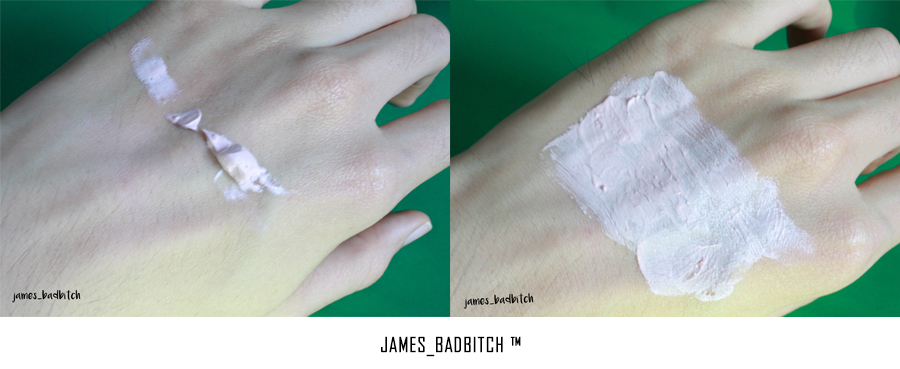 ในเนื้อมาส์กจะเป็นสีชมพูๆ มีเม็ดกลมๆเล็กๆอยู่ด้วยนะครับ ที่เป็นเนื้อชมพูๆเพราะมีส่วนผสมของ คาลาไมน์ (Calamine) นึกถึงคาลาไมน์โลชั่นแก้แพ้แก้คันเลยทีเดียว ฮ่าๆๆ