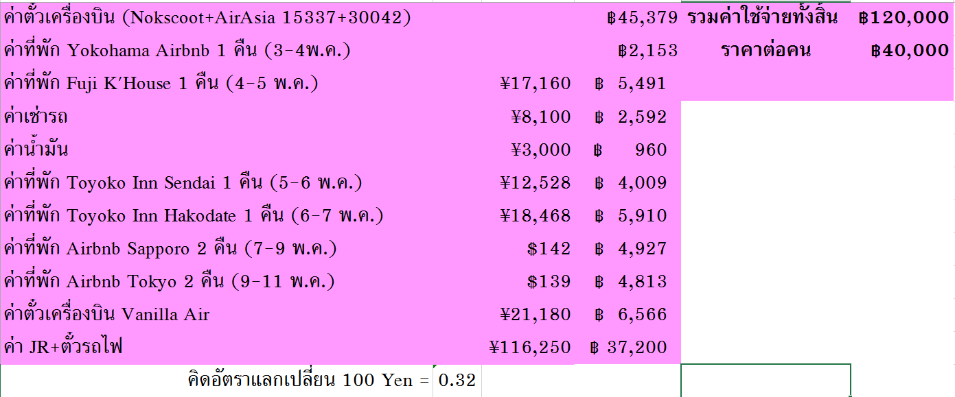 [CR] เตรียมแผนการเดินทางและค่าใช้จ่ายในการเดินทาง Yokohama-Fujikawaguchiko-Sendai-Hirosaki-Hakodate-Otaru-Sapporo-Tokyo