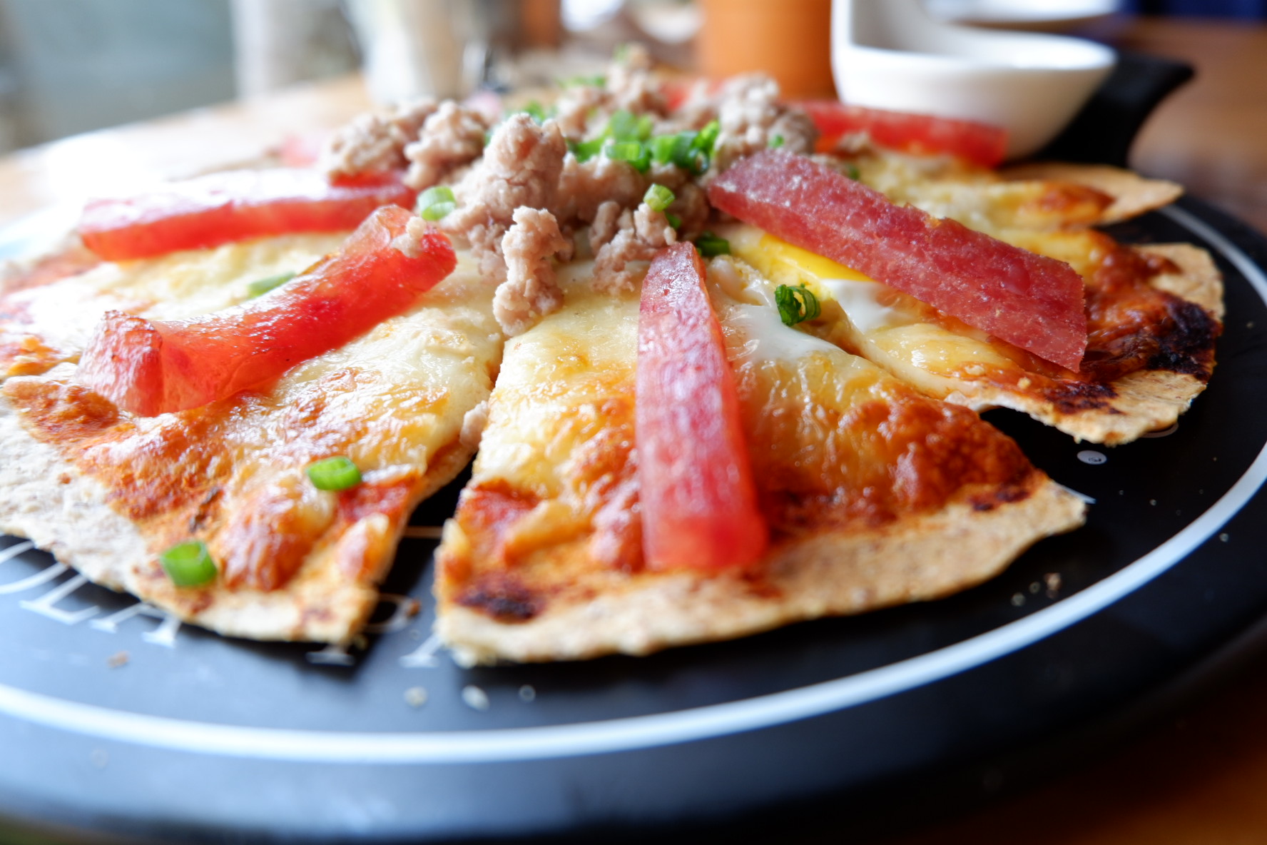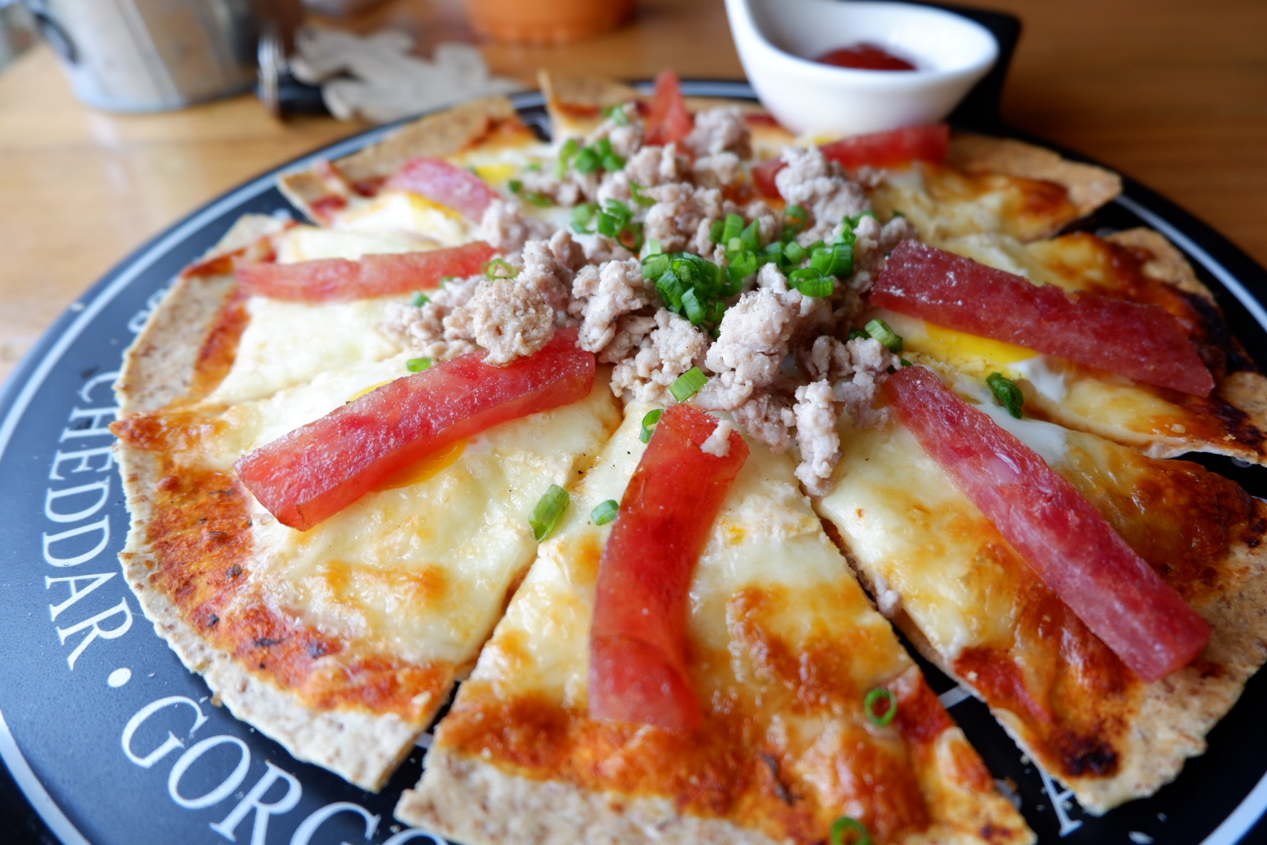 เมนูที่ 1 พิซซ่าไข่กะทะค่ะ อร่อยดีค่ะ แป้งบาง