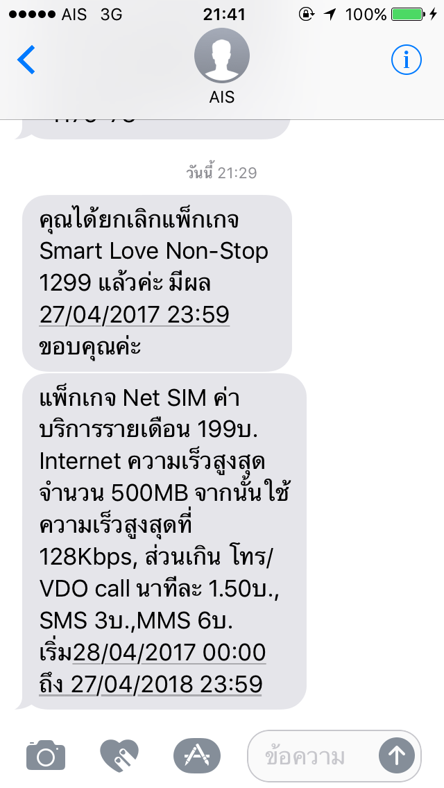 กดสมัครแพคเกจเสริมอินเตอร์เน็ต ais ผิดครับ