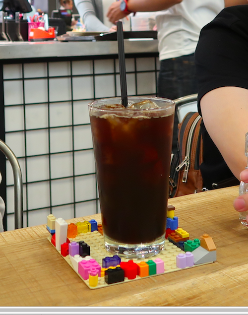 BTS Lego Cafe (ไม่แน่ใจชื่อ) สั่ง Brick Chocolate Waffle ก็จะมีน้ำตาลรูปเลโก้มาด้วย ส่วนน้ำเสิร์ฟมาพร้อมกับแผ่นเลโก้ ที่นั่งมีสองแบบ เป็นกลุ่มหรือ ไล่ระดับเป็นคู่ อยากนั่งมาก แต่เราไปกันเยอะ ส่วนตัวคิดว่าวาฟเฟิลและส่วนประกอบโดยรวมหวานไปหน่อย แป้งไม่ฟู ถ้าใครชอบแนวนี้น่าจะชอบ
