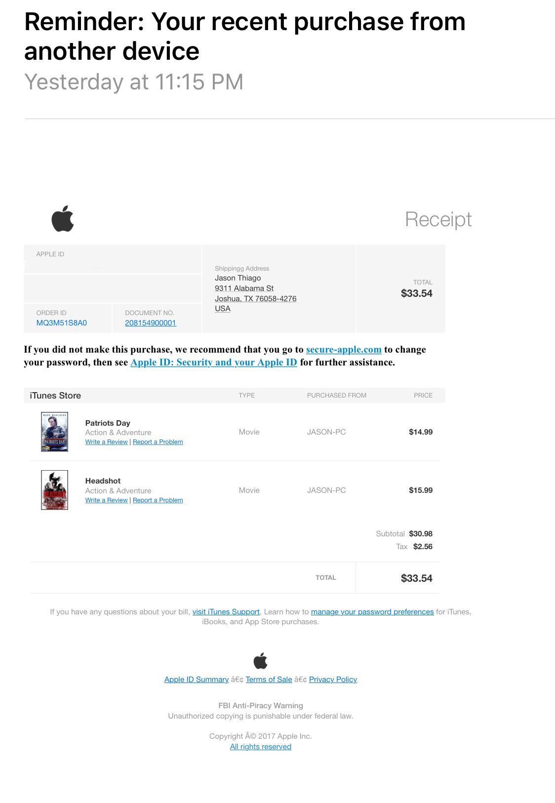 ไม่ได้ทำการสั่งซื้อสินค้าใดใดจากทางแอปเปิ้ลอยู่ดีดีก็มีใบเสร็จมาแบบนี้แสดงว่าโดนแฮ็คใช่ไหมคะ