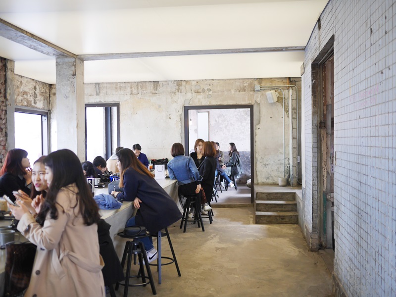 ร้าน Onion นี้เกิดมาจากซากตึกโรงงานร้างแถวย่าน ซึงซู ซึ่งเป็นย่านอุตสาหกรรมการทำรองเท้าของกรุงโซลเลย จะเห็นได้จากตั้งแต่ออก