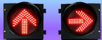 ไฟจราจรลูกศรสีแดง เราใช้กันจนชิน ความหมายคือ ห้ามตรงไป ห้ามเลี้ยวขวา