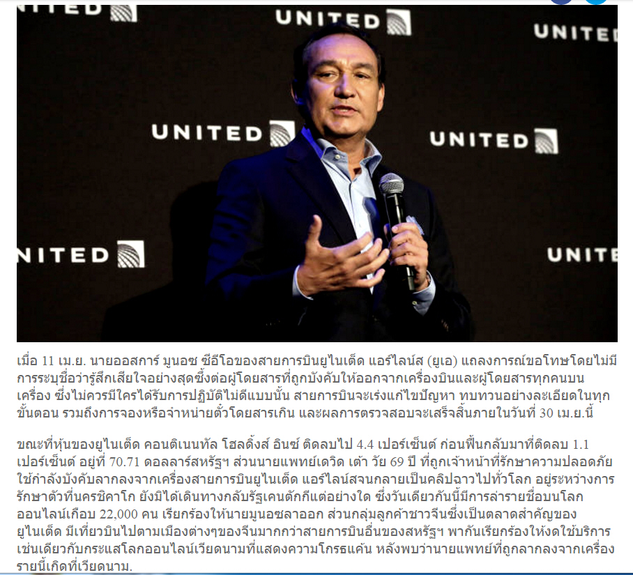 ..............ยูไนเต็ดแอร์ไลน์ยอมขอโทษ-จีนจี้บอยคอต ...................