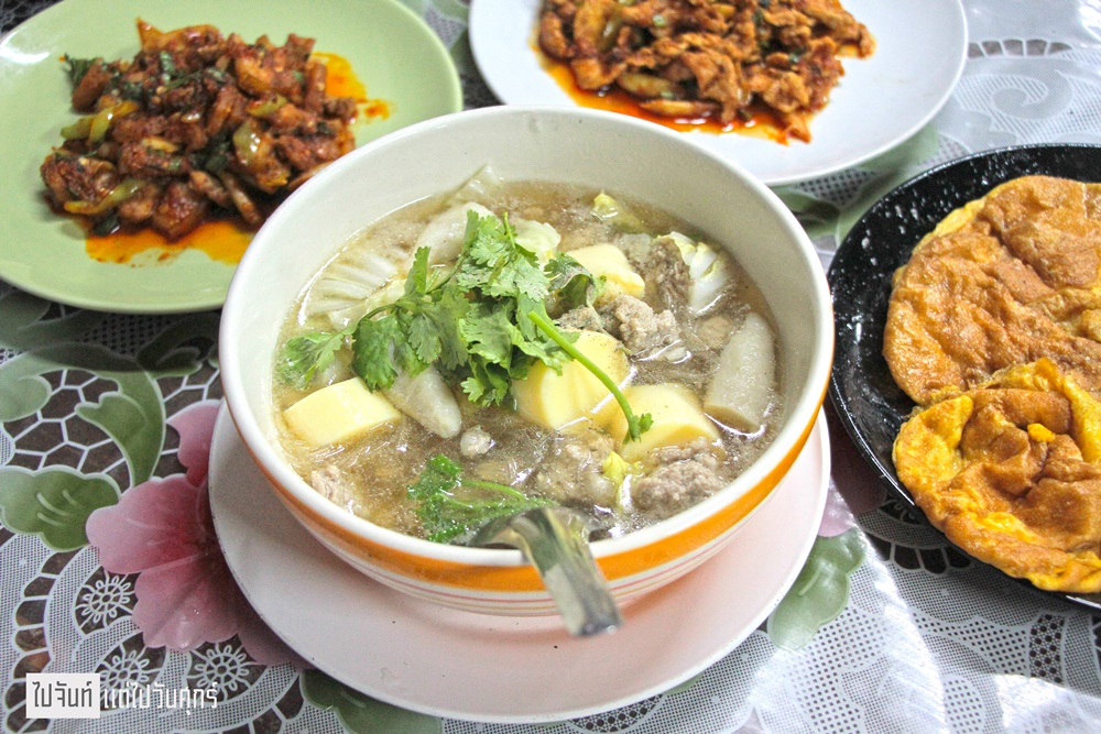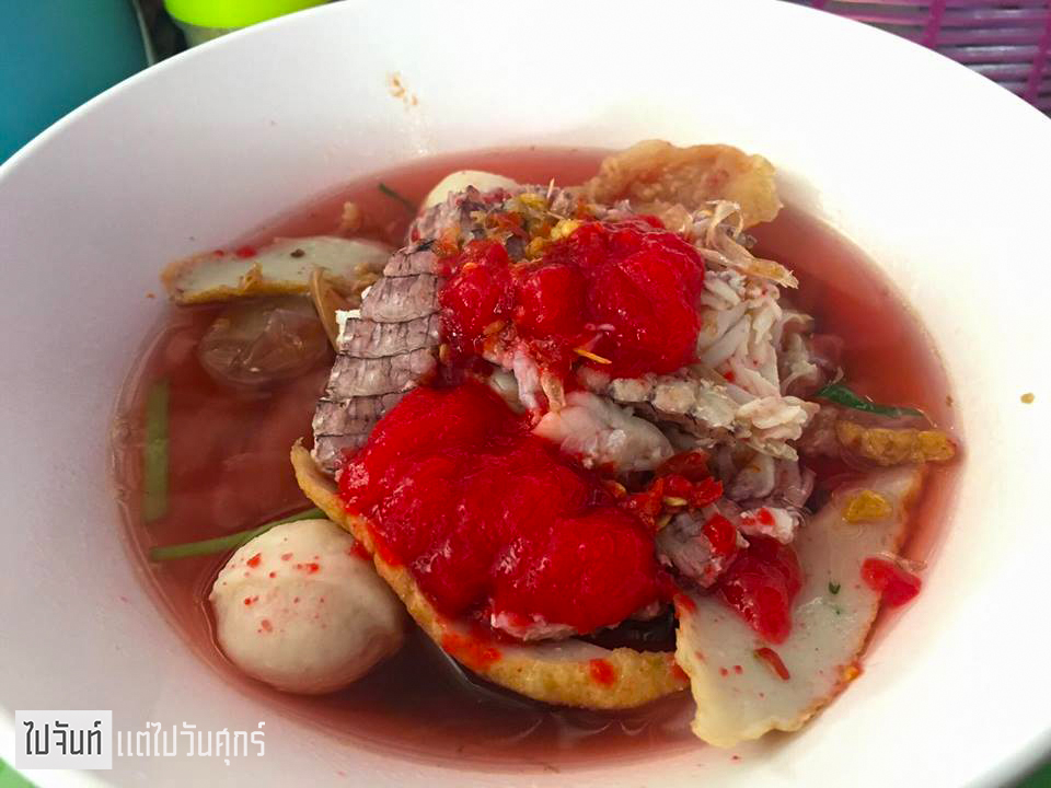 ประมาณ 4 ชั่วโมงต่อมาเราก็มาถึงจันท์กันแล้ว ตอนนี้พวกเราอยู่ที่ขนส่งอำเภอเมืองแต่พวกเราอยากไปอำเภอสอยดาวซึ่งไกลออกไปเกือบ 70 กิโล ! พวกเราเลยเดินไปหาลุงเปี๊ยก คนขับรถสองแถวสีแดงที่ยอมให้พวกเราอ้อนและคิดแค่เหมาคัน 1000 บาท ส่งถึงที่พร้อมแวะกินข้าว โดยเราบอกลุงเปี๊ยกว่า ขอร้านเด็ดๆ ค่ะลุง ลุงแกเลยจัดให้พาพวกเรามาที่ร้าน “เจ๊เพ็ญ เย็นตาโฟ” โดยราคาเริ่มต้นของร้านนี้คือ 40 บาทไปถึงชามละ 200 บาทเลยทีเดียว !!!!!!!!!!!!!!