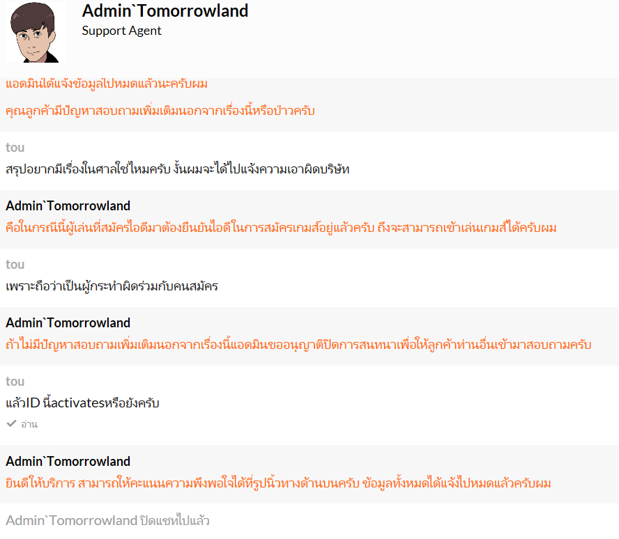 นอกจากจะไม่ยอมตรวจสอบIDแล้ว ยังตัดchatอีก