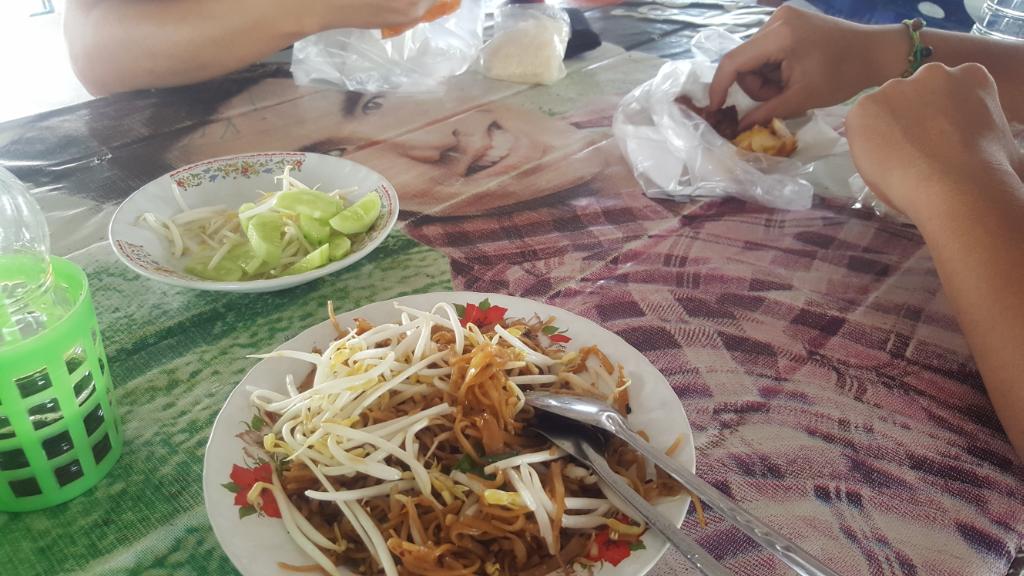 เราลงรถตู้ แล้วหาอะไรเข้าท้อง เจอร้านข้าวในตลาด เพื่อนๆกินไก่ทอด ผมจัดผัดหมี่เลย รสชาติเหมือนกับผัดหมี่โคราชครับ แต่จะหนักเครื่อง และไม่มีหมูไก่??? ได้ CABB เต็มๆ