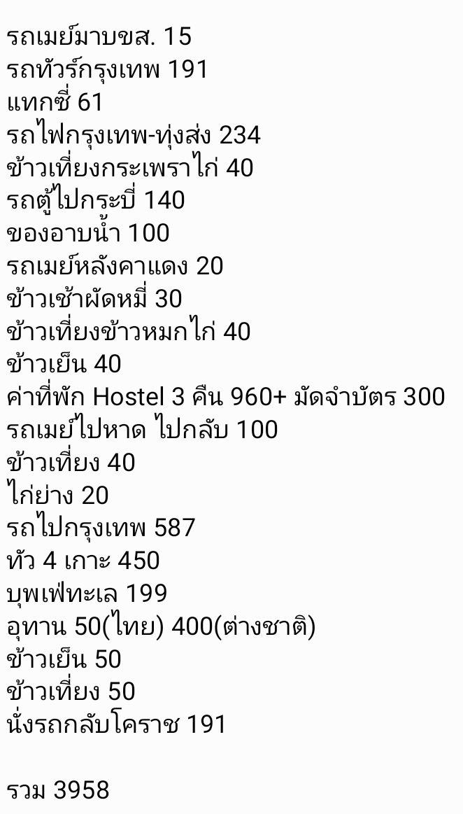 สรุปค่าใช้จ่ายทั้งหมด (ถ้าไปเครื่องบินจองช่วงตั๋วราคาถูกจะถูกกว่านี้เยอะครับ)