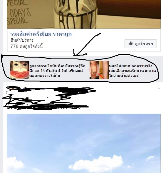 สอบถามวิธีการเอาโฆษณาอออกจากหน้า Feed Facebookของเรา ตามรูปประกอบ