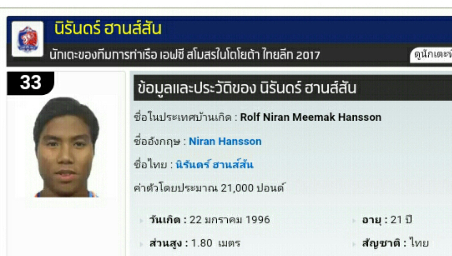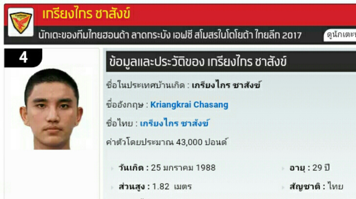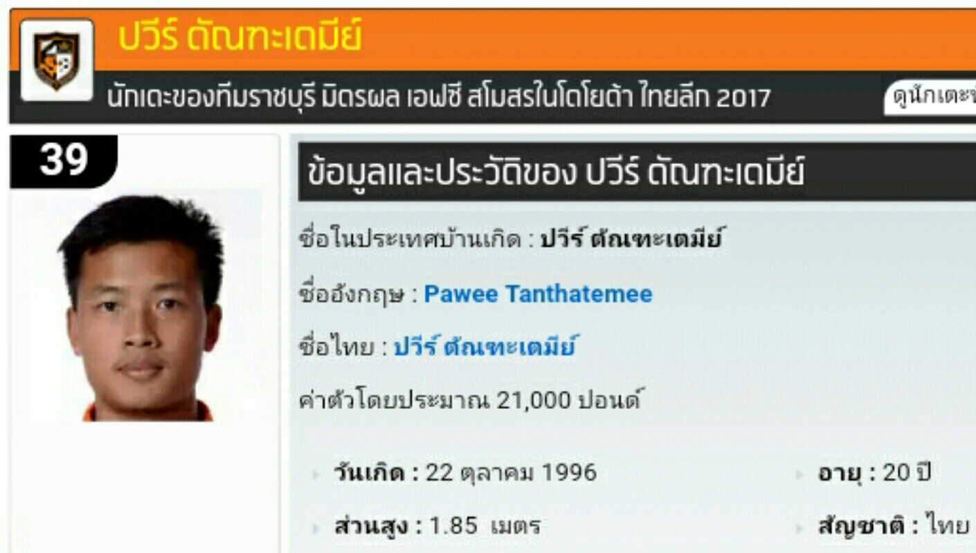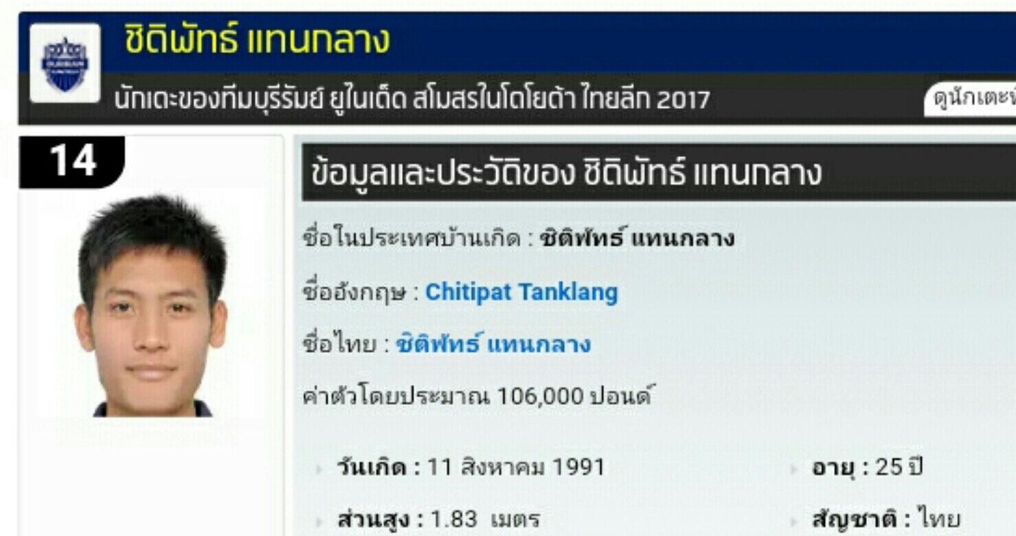 แนะนำ 20 เซนเตอร์แบ็คชาวไทย บนเวทีไทยลีก 2017 อายุ 20-29 ปี ส่วนสูง 179-196 ซ.ม. ในตัวเลือกปราการทีมชาติไทยชุดใหญ่