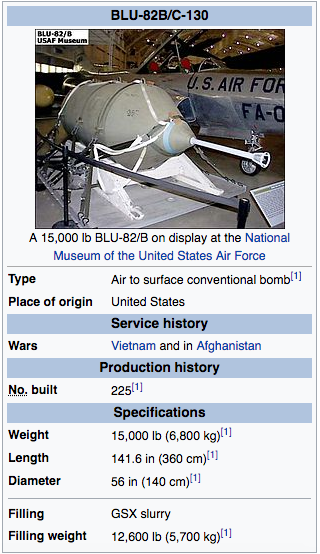 ภายใน BLU-82 บรรจุสารผสมระเบิดขนาด 12,600 ปอนด์