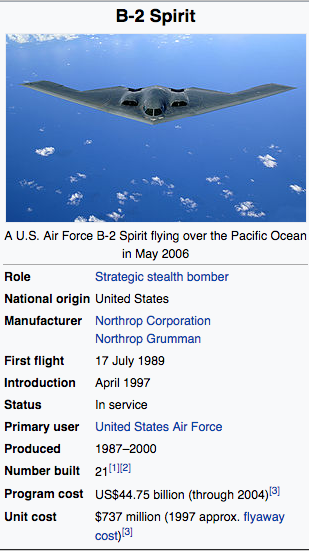 ไม่ใช่ต้นทุน 300 ล้านเหรียญสหรัฐ/หรือลูกละ 16 ล้านเหรียญสหรัฐ