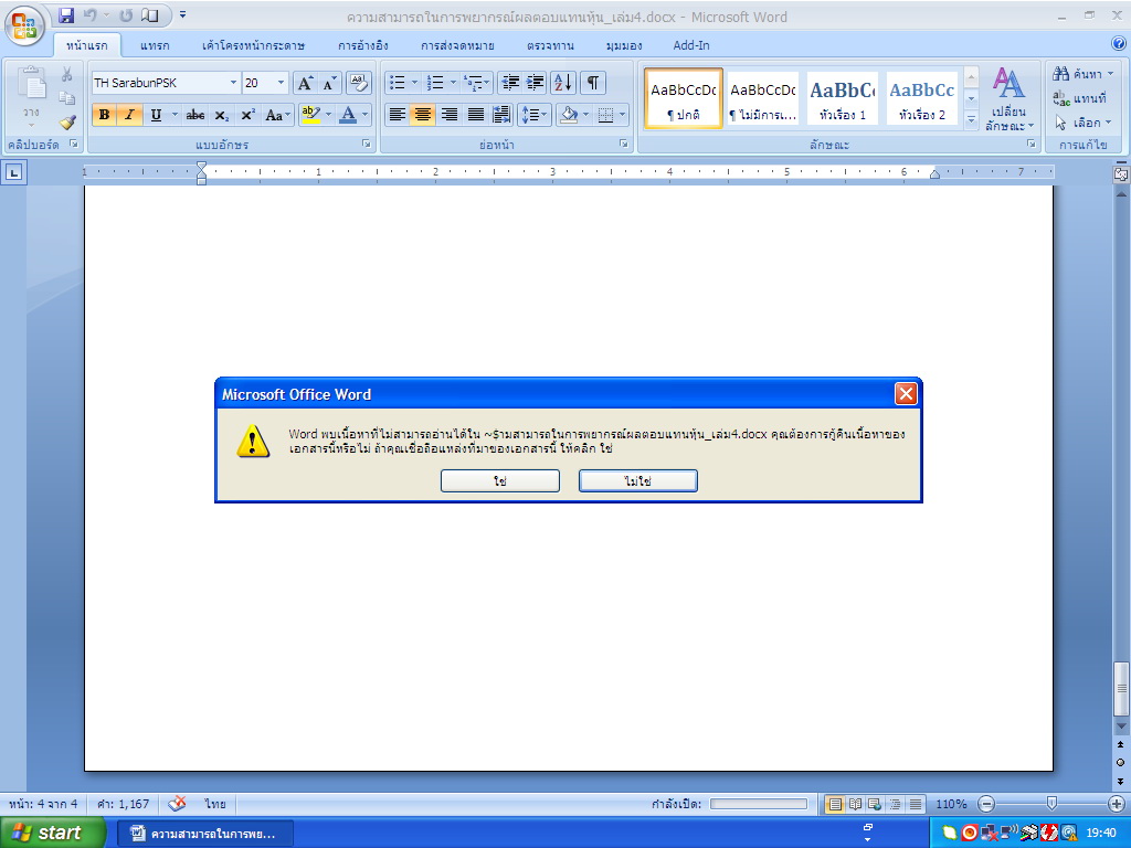 ขอความช่วยเหลือไฟล์Wordเสียหายค่ะ
