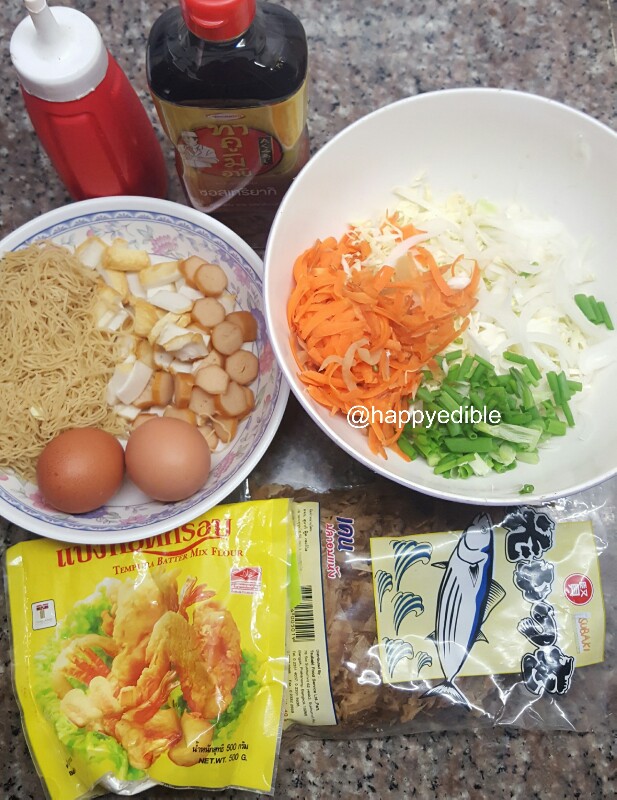 -เส้นบะหมี่เหลือง ( อันนี้แบบประยุกต์ใส่เพิ่มเอง เราว่ามันกรอบอร่อยดี)