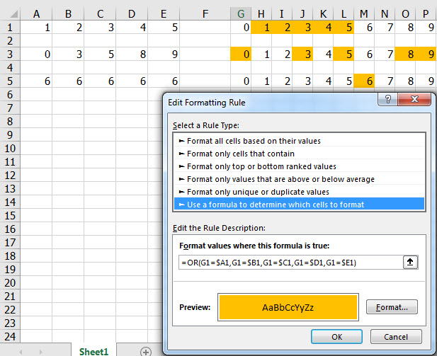 ใช้ Conditional Formatting > New Rule ใส่สูตรตามรูป แล้วกด OK ครับ