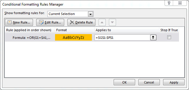 ส่วน Applied to ให้เป็น $G$1:$P$1 ตามรูป แล้วกด OK ครับ