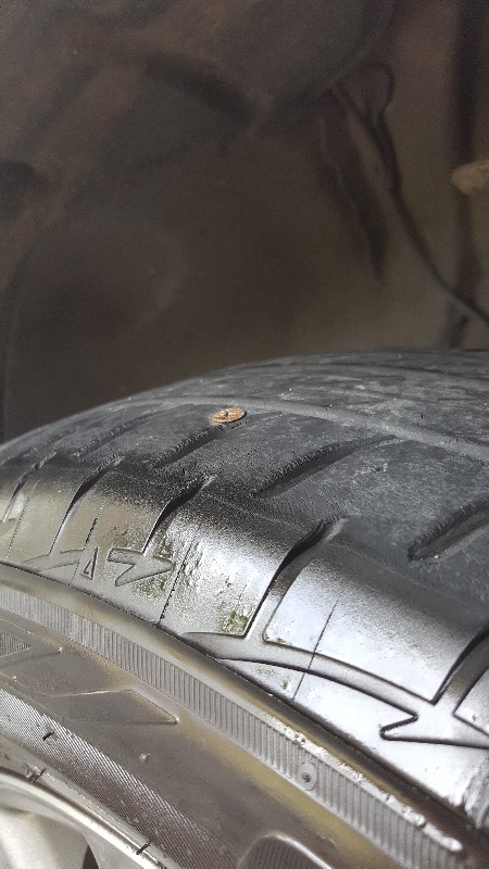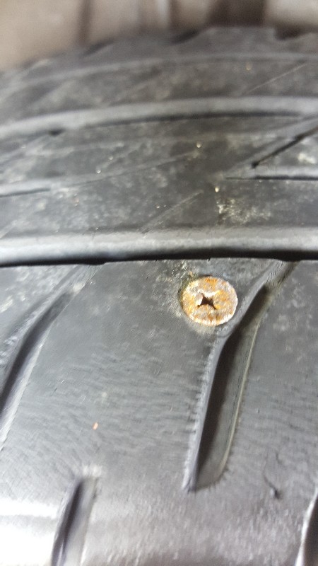 เช้านี้เพิ่งล้างรถก้มลงไปมองยางนึกว่าติดเศษอะไรกะจะเอาออกดันเจอสกูรปักคาล้อเลย แต่แปลกว่าทำไมลมไม่ออก หรือเพราะเติมไนโตรเจน