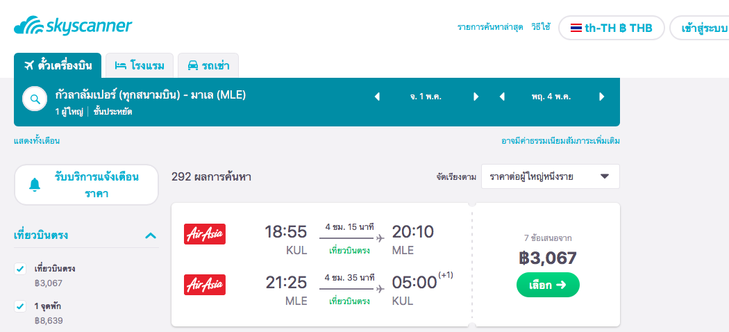 เห็นเดินทางได้ทั้งเดือนนี้ เดือนหน้าเลย ราคาน่าสนใจมาก แต่ปัญหาคือต้องไปขึ้นที่ KUL ฮ่าๆๆ