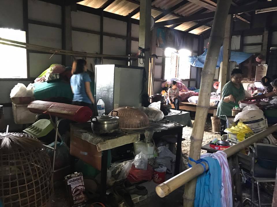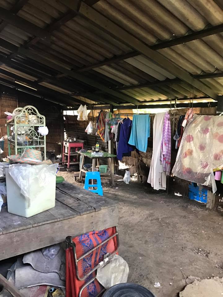 บริเวณที่นอน ของสามคนพ่อแม่ลูกนอกจากนอนบริเวณนี้ ก็นั่งทำกิจกรรมทุกอย่างบริเวณนี้ เพราะพื้นเป็นดินนั่งไม่ได้