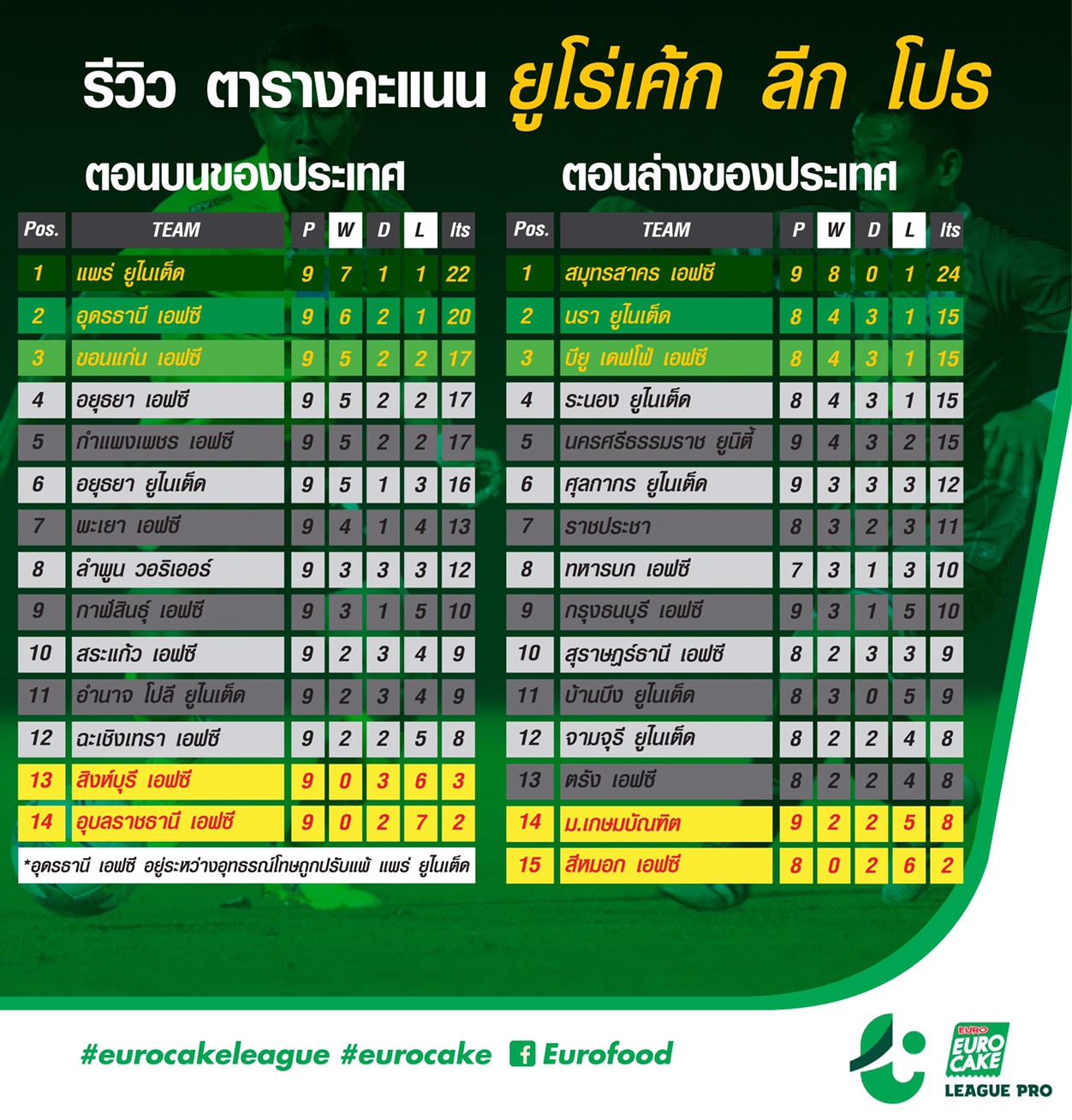 ศึก “ยูโร่เค้ก ลีก โปร” หรือ ไทยลีก 3 ฤดูกาล 2017 ยังอยู่ในช่วงพักเบรกยาว แต่ยังมีประเด็นที่น่าสนใจหลังผ่านแมตช์วีก 9 ไปเมื่อสัปดาห์ก่อน และนี่คือ 2 ทีมนำจ่าฝูงโซนบนและโซนล่าง ที่น่าจับตามองว่าจะรักษาบัลลังก์เอาไว้ได้ตลอดรอดฝั่งหรือไม่?