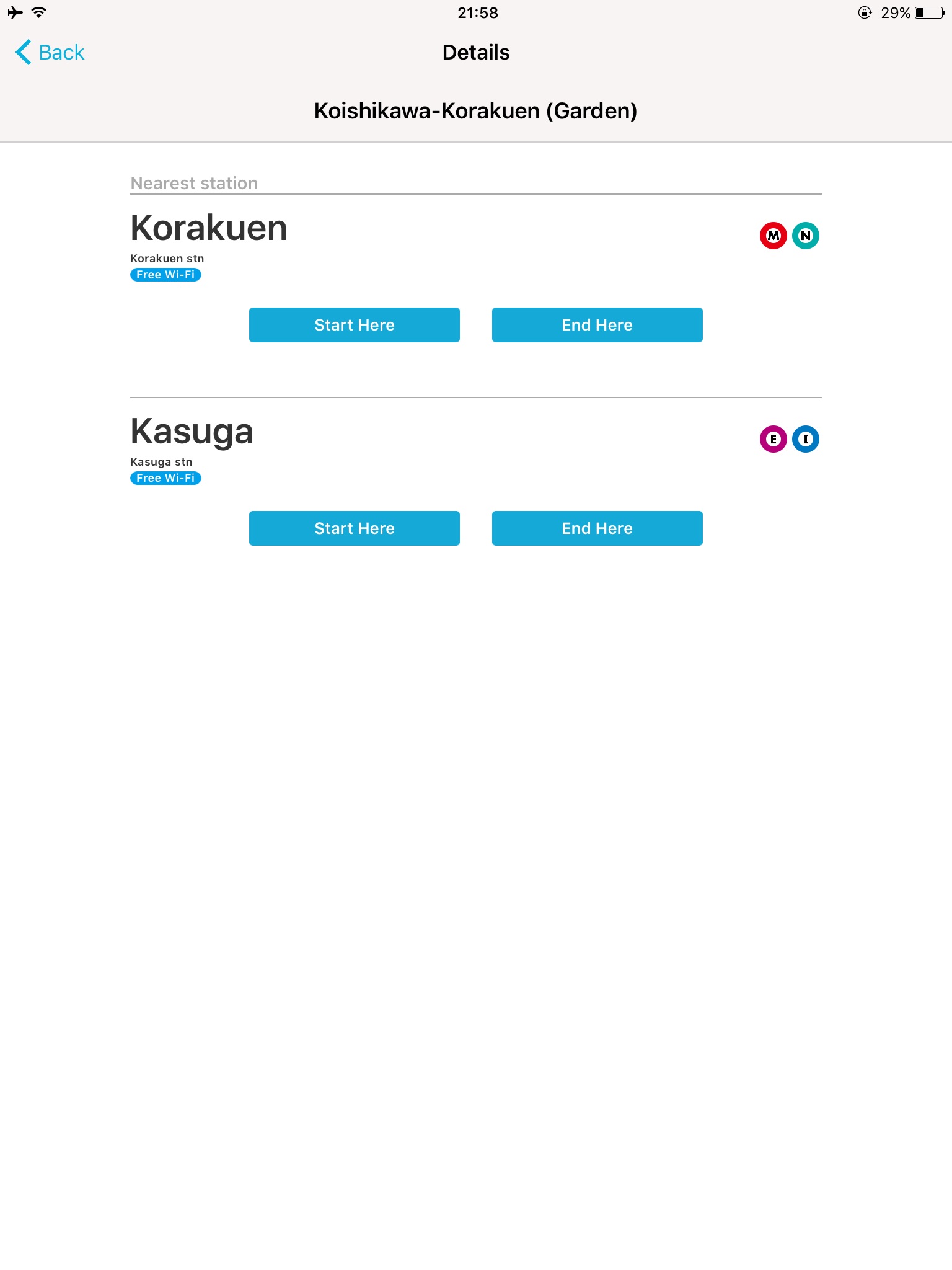 - ที่มุมด้านล่างซ้าย จะมีสถานที่ท่องเที่ยวแนะนำนะครับ ลองกดดู มันจะบอกสถานีที่เราต้องไปครับ ในรูปประกอบ ผมจะไปที่ Koishikawa Korakuen Gardens นะครับ