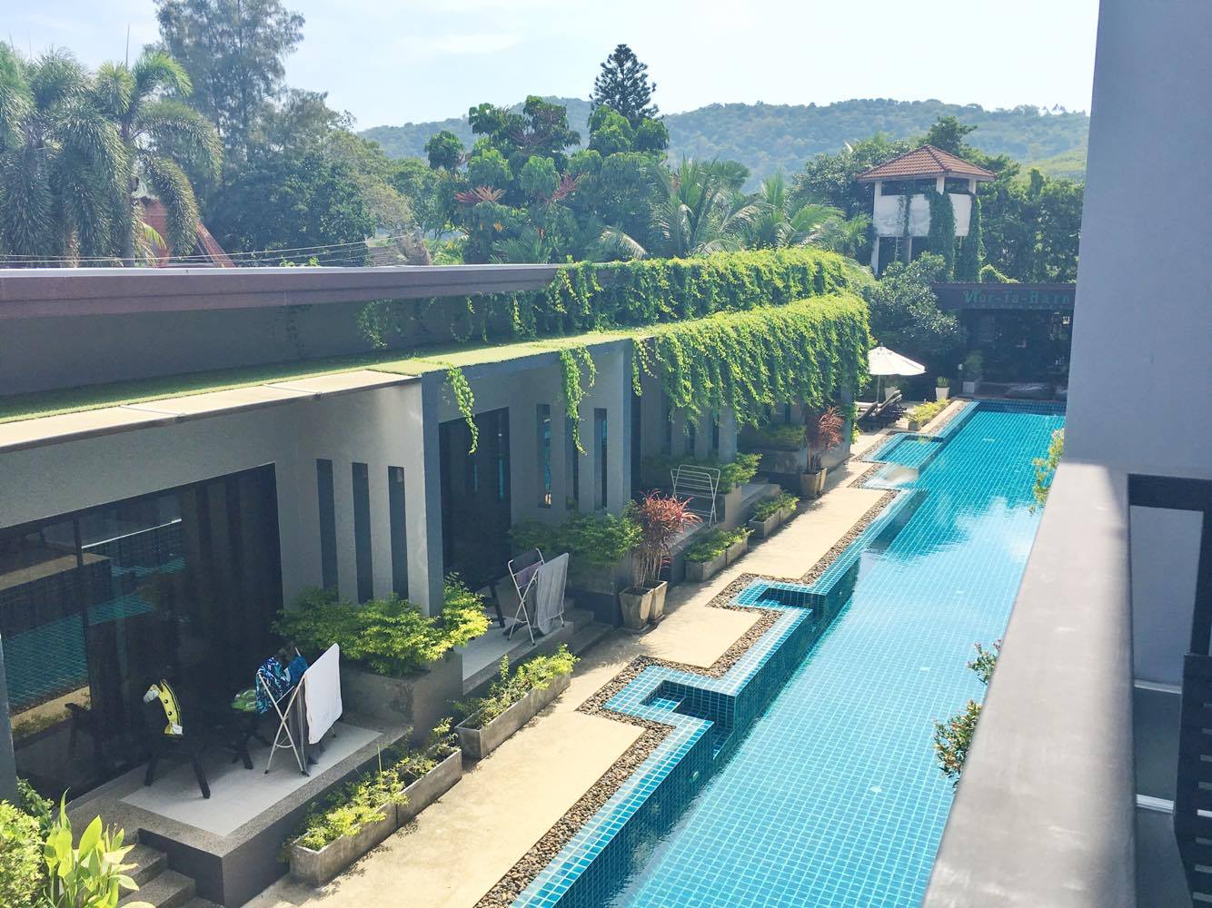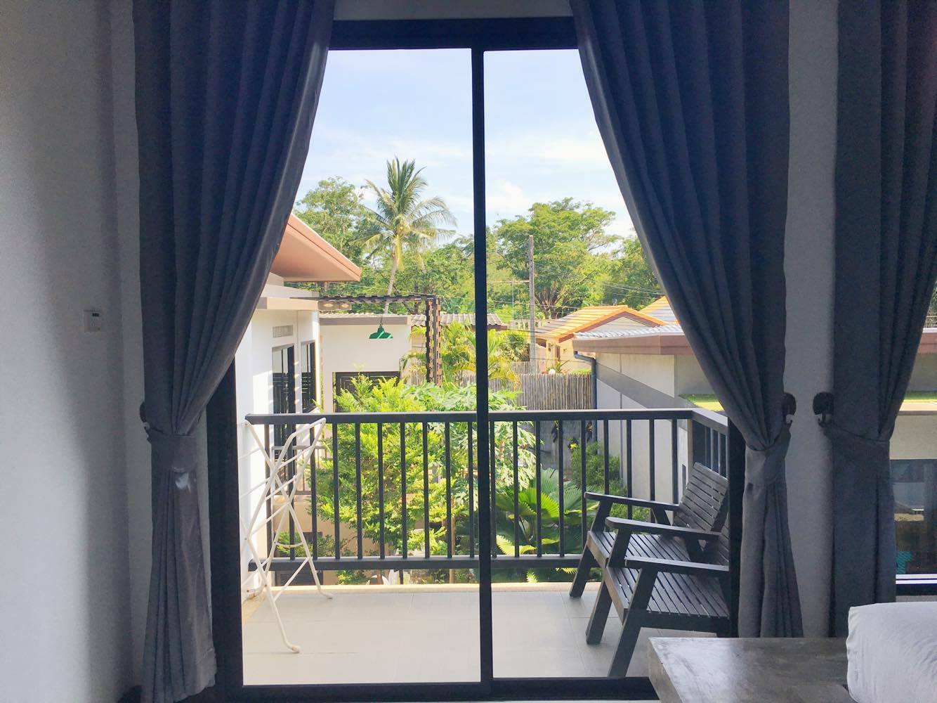 เดินออกมานอกระเบียงก็จะเจอเก้าอี้ 2 ตัว ไว้นั่งส่องผู้ชายที่มาว่ายน้ำ เอ้ยย ไม่ใช่ไว้นั่งกินลมชมวิว555