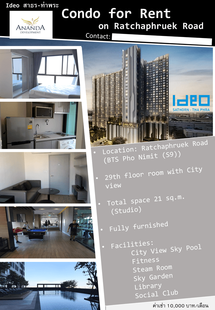 ให้เช่า คอนโด Ideo สาธร-ท่าพระ