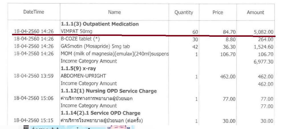วันนี้ (18 เมษายน 2560) ไปหาหมอ รพ.เอกชนในกรุงเทพ โดนค่ายา Vimpat 50mg เม็ดละ 84.70 บาททานวันละสองเม็ดรวมวันละ 170 บาท รวมห้าพันกว่าบาท ทานได้สามสิบวัน ใครรู้ว่าเป็นยาอะไรครับ แพงแบบนี้หรือ มีที่ไหนถูกกว่านี้ไหม?