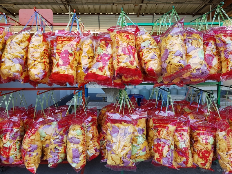 ตามต่างจังหวัดจะมีของกิน ขนม พืชผักผลไม้ ฯลฯ วางจำหน่ายข้างทาง หรือตามปั้มน้ำมัน ในภาพคือข้าวเกรียบอูมามิ นิยมซื้อฝากคนรู้จัก เอาไว้แกล้มเบียร์ กินเล่นก็ดี