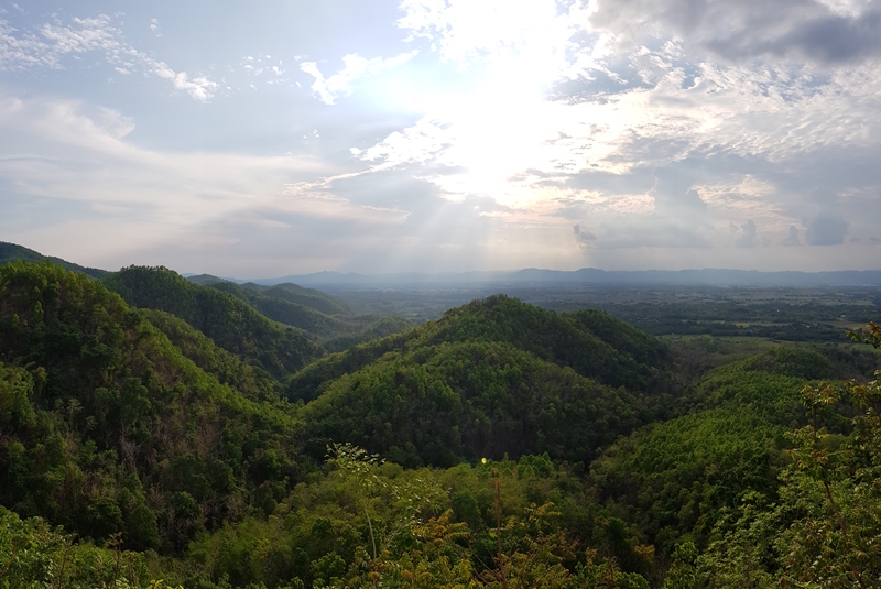 ก่อนกลับกรุงเทพฯ แวะชมสวนของทางบ้านครับ วิวสวย พื้นหลังเป็นภูเขาซับซ้อน ชาวบ้านแถบนี้นิยมปลูกถั่วเหลือง หอม กระเทียม ทำนาข้าว เลี้ยงปศุสัตว์
