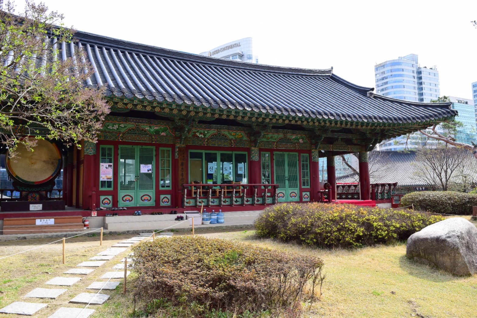 เราเดินจาก Coex Mall ไป หรือถ้ามาจากที่อื่นก็สามารถนั่งรถไฟไปลงที่สถานี Bongeunsa Exit 1 จากนั้นเดินตรงไปวัดจะอยู่ด้านขวามือค่ะ อย่าลืมหยิบคู่มือจากตรง Information ด้านซ้ายมือของทางเข้า