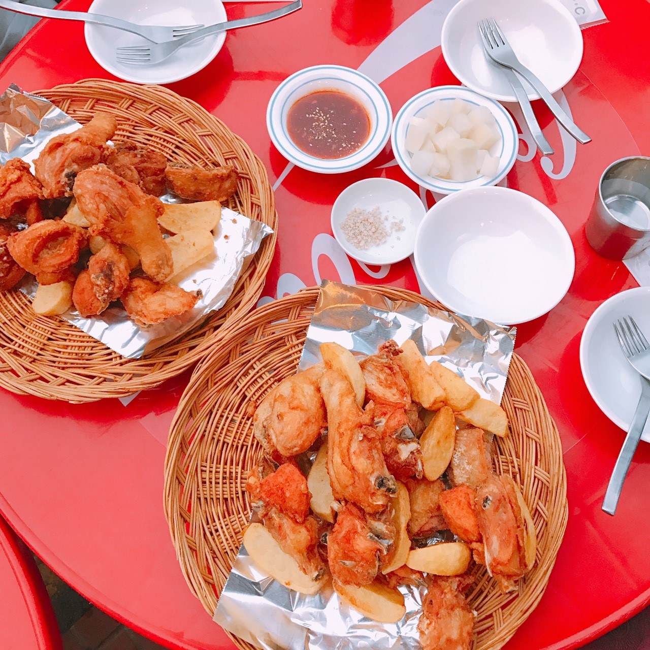 ขนาดไม่เดินขึ้นเขายังเหนื่อย เราเลยแวะกินไก่ทอดตรงข้ามกับร้านที่มีโอ่งด้านบน อาจุมม่าให้เยอะมาก เราสั่งมา 2 ชุดสำหรับ 5 คน แล้วก็บอกว่าขอสั่งข้าวเพิ่มอีก 5 ถ้วยเพื่อให้พอกับจำนวนคน อาจุมม่าก็บอกว่าไก่ทอดก็บิ๊กไซด์แล้วนะ สั่งข้าวแค่ 2 ก็พอ ถ้าไม่พอแล้วค่อยสั่งเพิ่ม พูดอิ๊งค์ไฟแลบเลย แถมเเทคเเคร์เราดีมาก คอยดูตลอดว่าน้ำจิ้มหมดมั้ย น้ำหมดรึป่าว ตบท้ายด้วยมาถามว่าต้องการสั่งข้าวเพิ่มอีกมั้ย 555+
