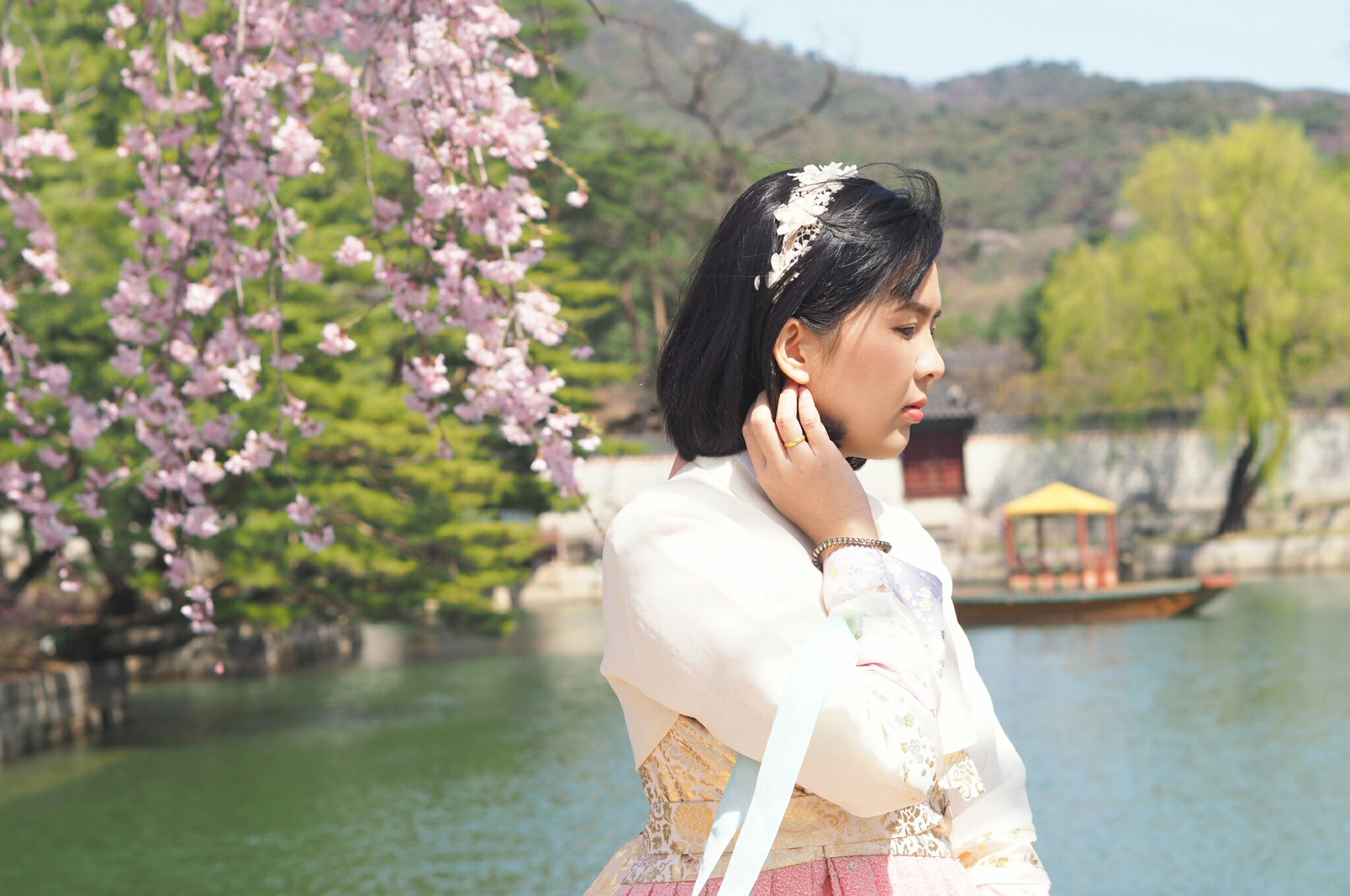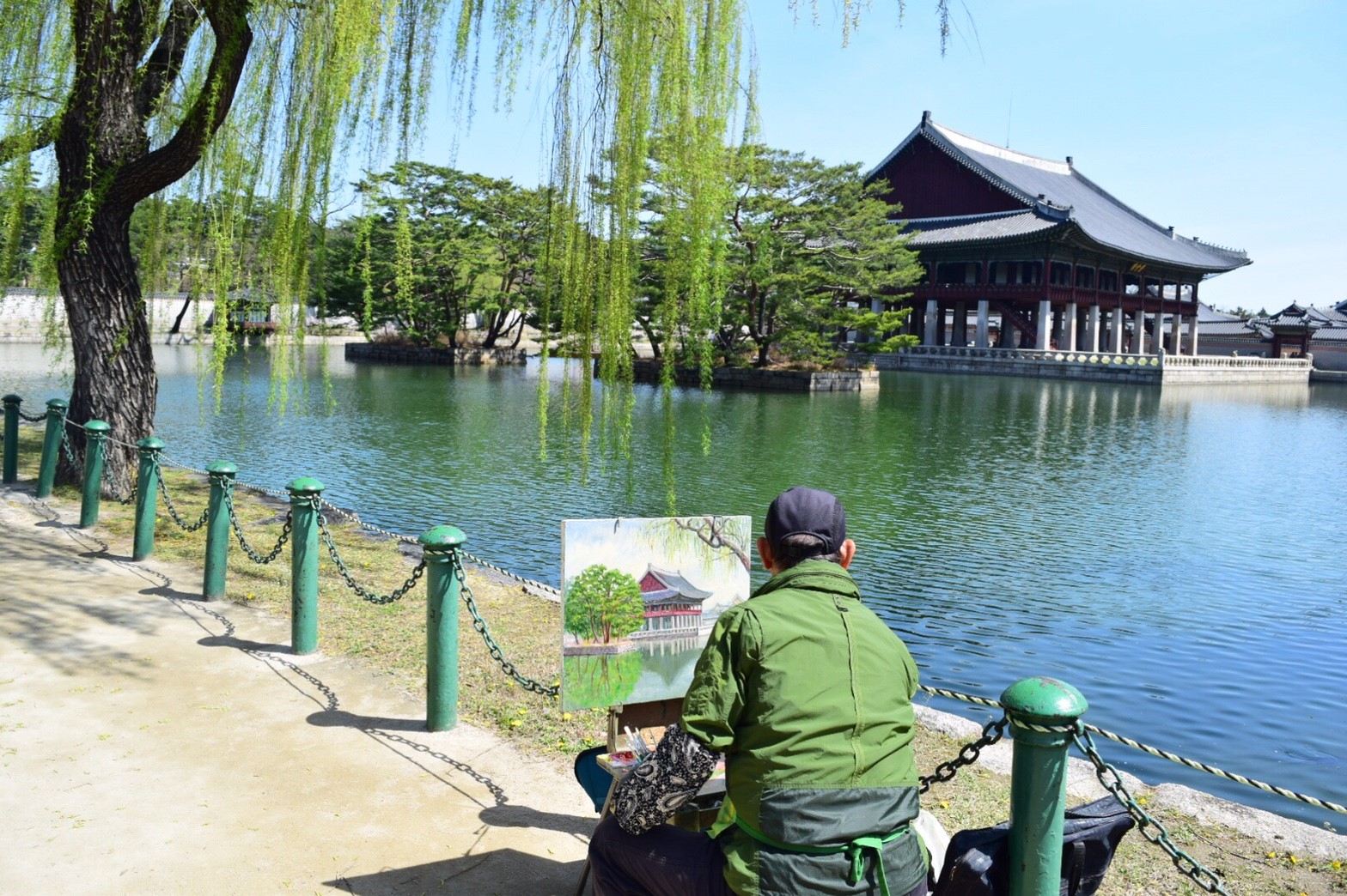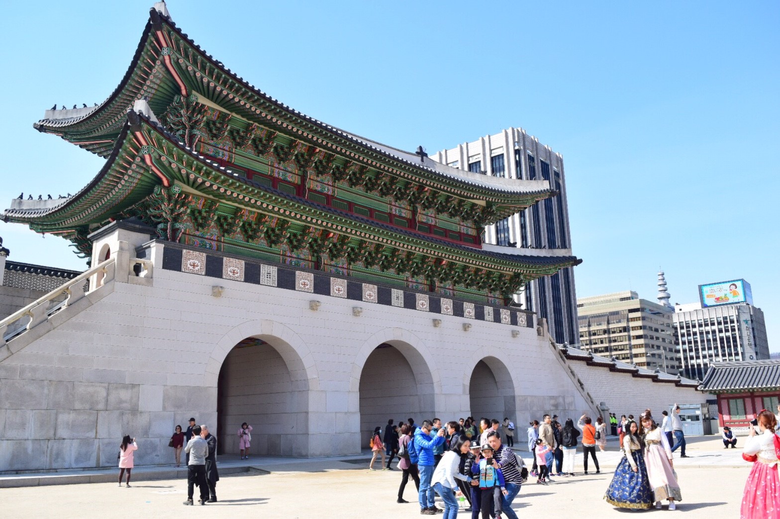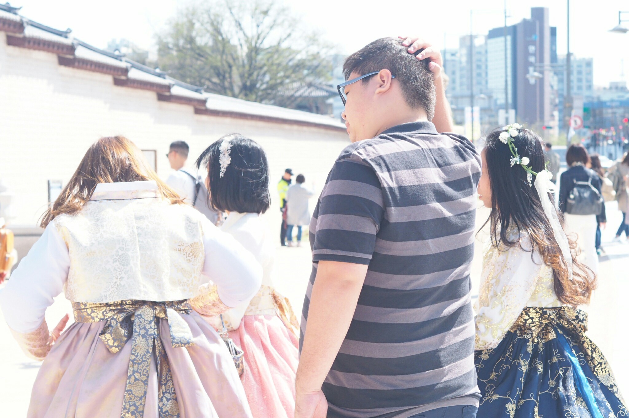 นักท่องเที่ยวเยอะมากๆ ชุดฮันบก สำหรับใครที่ใส่ชุดฮันบกเข้าวังสามารถเข้าชมวังได้ฟรีนะ แต่ต้องไปรับตั๋วตรงจุดขายตั๋วทางด้านขวามือก่อนเราเช่าชุดฮันบกที่ร้าน 경복궁한복대여-서화한복 Seohwa Hanbok 西花韓服 4 ชั่วโมง 18,000 วอน สามารถลองชุดได้ 2 ครั้ง เครื่องประดับฟรี กระเป๋าฟรีค่ะ เราสามารถจองคิวผ่านทางเพจในเฟซบุคได้เลย พนักงานจะช่วยใส่ชุดให้ หรือเราจะให้เค้าช่วยเลือกชุดที่เหมาะกับเราก็ได้ โดยที่ทางร้านจะเก็บเงินมัดจำค่าชุดพร้อมเก็บพาสปอร์ตเราเอาไว้