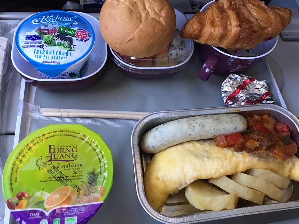 โดยเที่ยวบินนี้จะมีการเสริฟอาหารสองรอบด้วยกัน รอบแรกมีอาหารให้เลือกคือ สปาเก็ตตีกับออมเล็ท แต่สปาเก็ตตี้หมดเราเลยได้ทานออมเล็ทแทน