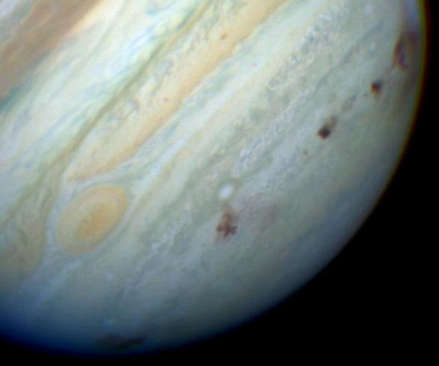 ดาวพฤหัสเป็นดาวแก้สขนาดใหญ่ โอกาสถูกพุ่งชนจากวัตถุอวกาศต่าง ๆ ก็มีมากครับ