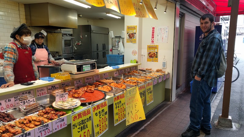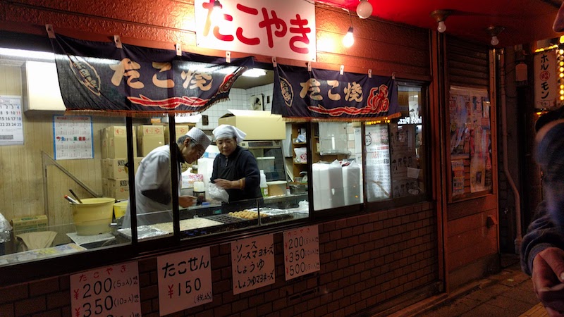 ออกจากสถานีมา อย่างแรกที่เจอคืนร้านทาโกะยากิเล็กๆ ขายตอนเยนๆถึงดึกๆ เพิ่งรู้ว่าทาโกะแปลว่าปลาหมึก แต่ละก้อนก็จะมีปลาหมึกติดมาด้วยชิ้นสองชิ้น เที่ยวปุ่นไม่เคยเจอทาโกะยากิยัดกุ้ง ยัดปูอัด คนไทยทำทาโกะยากิเป็นสัตว์อื่นด้วย งานครีเอทีฟต้องมา..