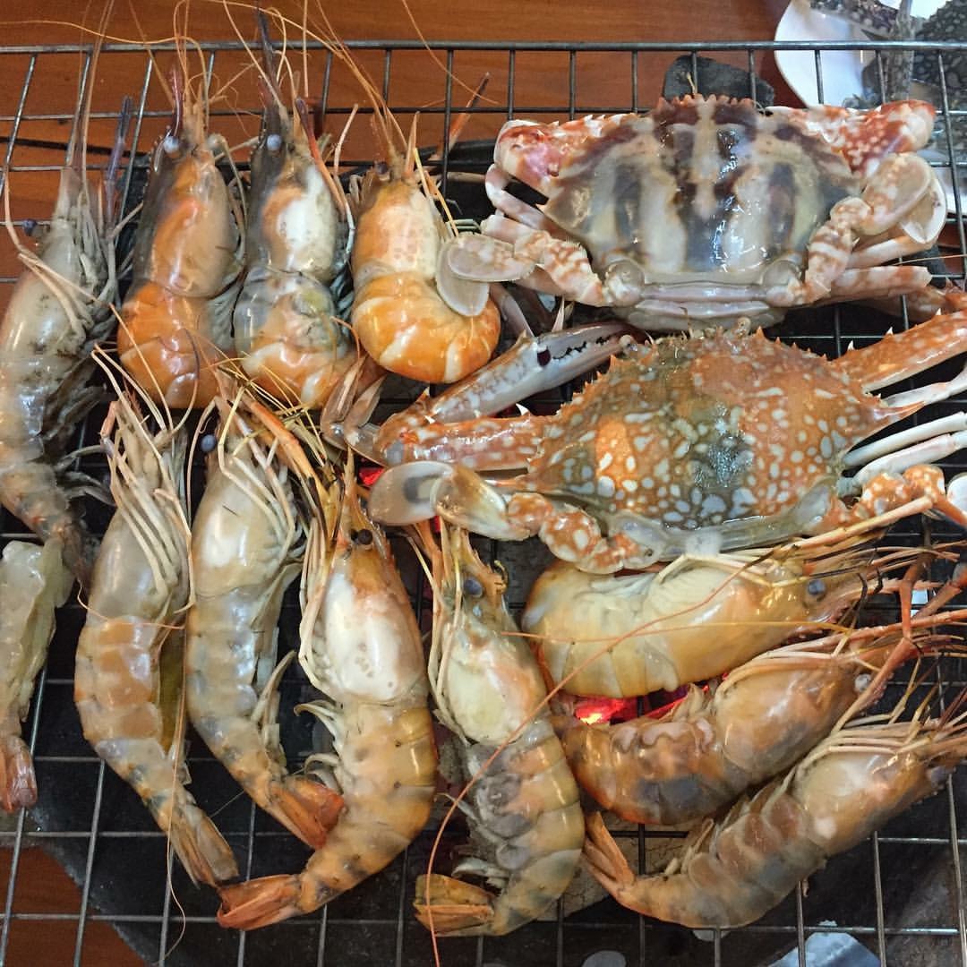 ปิดท้ายอาหารมื้อเย็น เป็นของทะเลลวกเผาหมดเลยค่ะ วันนี้มีปูด้วยนะคะ ร้านคนไม่เยอะ ทัวร์จีนเพิ่งออกไปค่ะ ก็คล้ายจะเป็นร้านของเรา ชื่อร้านภูเก็ตซีฟูดบุบเฟ่ต์