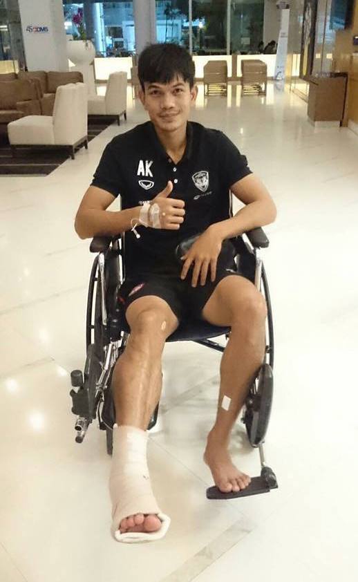 โดยหลังจบแมตช์เจ้าตัวได้เดินทางไปที่ โรงพยาบาลกรุงเทพ ผู้สนับสนุนทีมทันที ซึ่งแพทย์ได้ทำการเอ็กซเรย์บริเวณข้อเท้าขวา