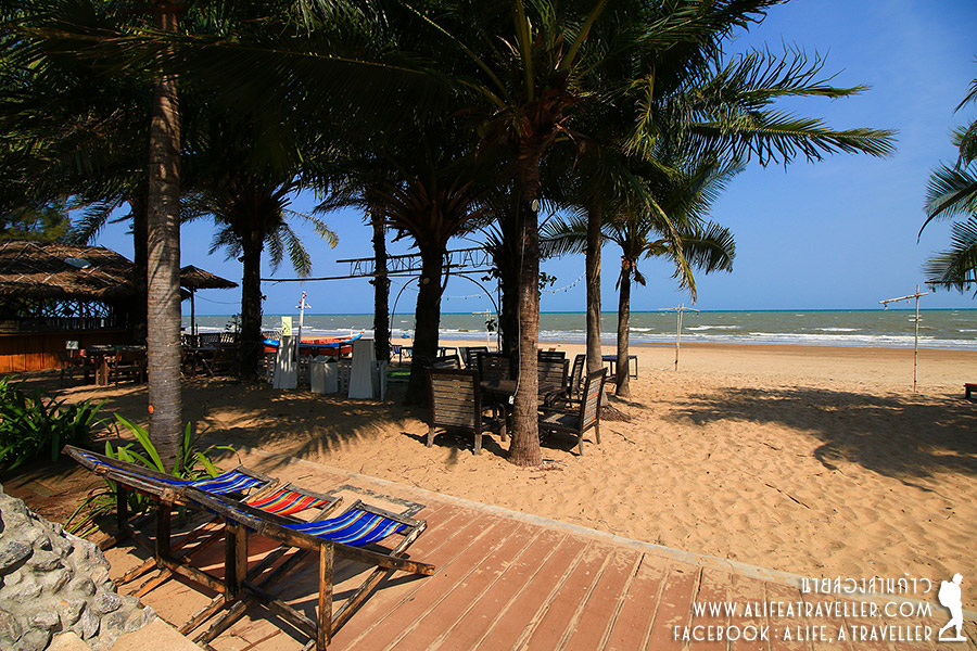 รีสอร์ทอยู่ริมชายหาดบ่อนอก มีพื้นที่ให้พักผ่อน ทำกิจกรรม สระว่ายน้ำขนาดกะทัดรัด ทว่าต้องบอกนิดหน่อยครับว่าหาดบ่อนอกไม่ใช่ทะเลประเภทสวยใส ไปใส่บิกินี่เกลือกลิ้งอาบแดด เพราะเป็นชายหาดบ้านๆ ทรายสีค่อนข้างคล้ำ เสน่ห์ของมันคือเราสามารถพบเห็นวิถีชีวิตผู้คนที่ยังดำรงอยู่กันแบบเรียบง่าย หาปลาหาหอย ไม่เหมือนกับชายหาดท่องเที่ยวโดยปกติ