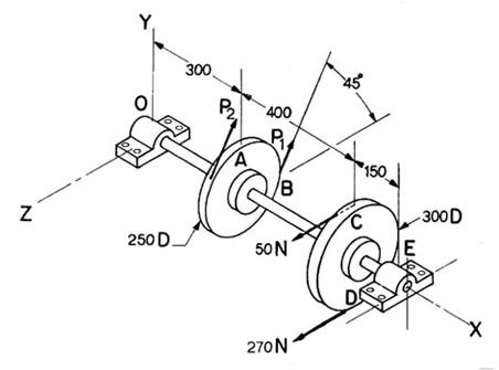 ขอวิธีหาโมเมนต์ของเพลาที่มีแรงจากพูเล่ย์สองแกนหน่อยครับ
