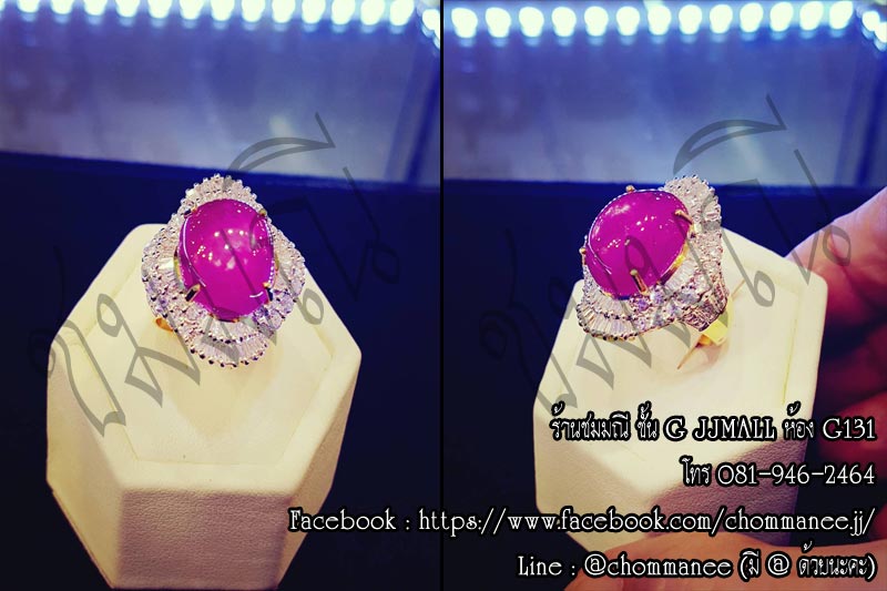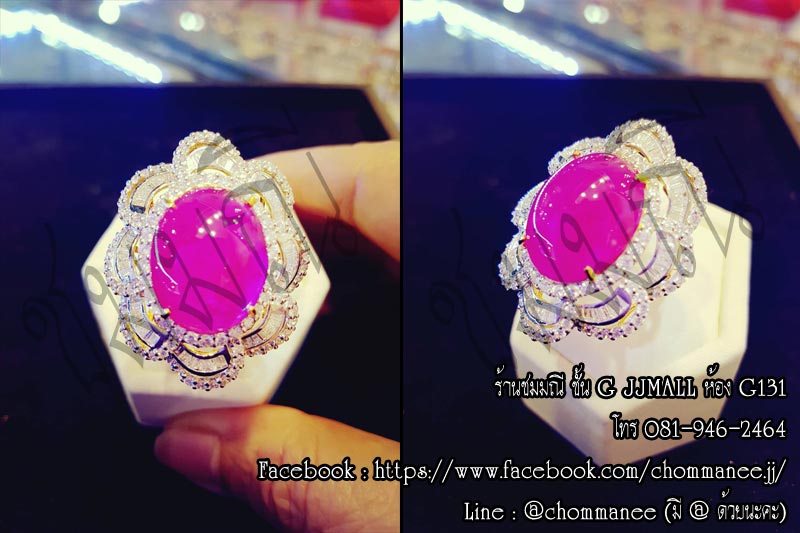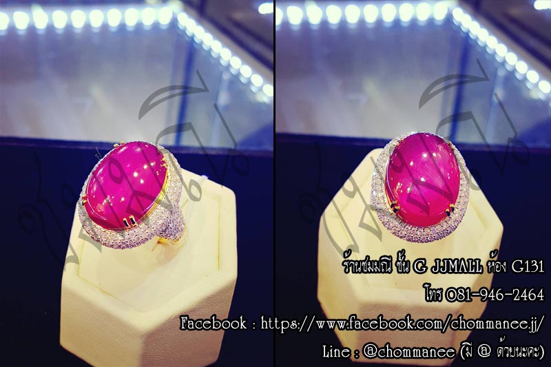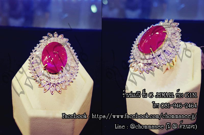 ทับทิมโมซัมบิก 20 กะรัต เพชรเบลเยี่ยม น้ำ 98 2.50 กะรัต ทอง 90% 18 กรัม