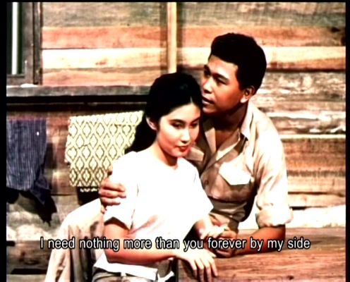ทั้งคู่อยู่ท่ามกลางความแร้นแค้นในบ้านไม้เก่าๆ ด้วยความรักยิ่งใหญ่เหนือสิ่งใด วันหนึ่งชูต้องไปเป็นทหารรบในยามสงคราม วันที่จากลากัน ชูสัญญากับเธอว่า ถ้านาฬิกาตี ๘ ครั้ง ช่วงเช้าและค่ำ เขาจะส่งใจรักมาถึงเธอ ถ้าเดือนหงายหรือเดือนมืดเขาจะส่งความรักมาให้ ชูไปแล้วคิดถึงและเป็นห่วงเนียรมาก มีบทเพลงในหนังซึ้งตรึงใจผู้ชม ในสนามรบคืนเดือนมืด ทหารซ่อนอยู่ในหลุมหลบภัย ชูหยิบรูปคนรักขึ้นมากอดชื่นชมรำพันว่า ‘คิดถึงเนียรมากจ้ะ’ ร้องออกมาในบทเพลงชื่อ “พิศภาพดวงใจ” ดูแล้วซึ้งมาก เพลงนี้ยังได้รับความนิยมถึงทุกวันนี้