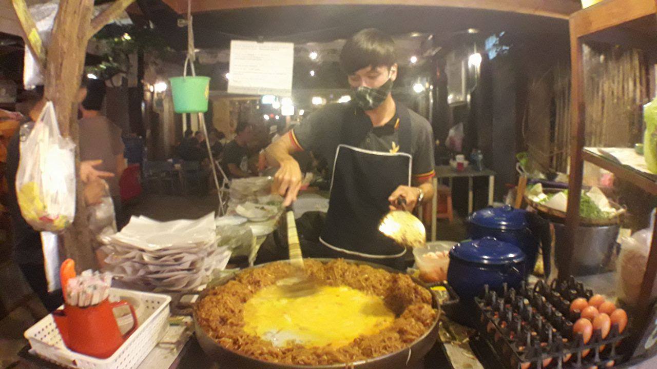 เดินมาซักพักประมาณ19:00 ก็รู้สึกหิวมาสะดุดที่ร้าน ร้านนึง"ร้านผัดไทยโบราณ"เราเลยแวะทานอาหารเย็นกันที่นั่นเลย ราคาอยู่ที่35บาทขึ้นไป