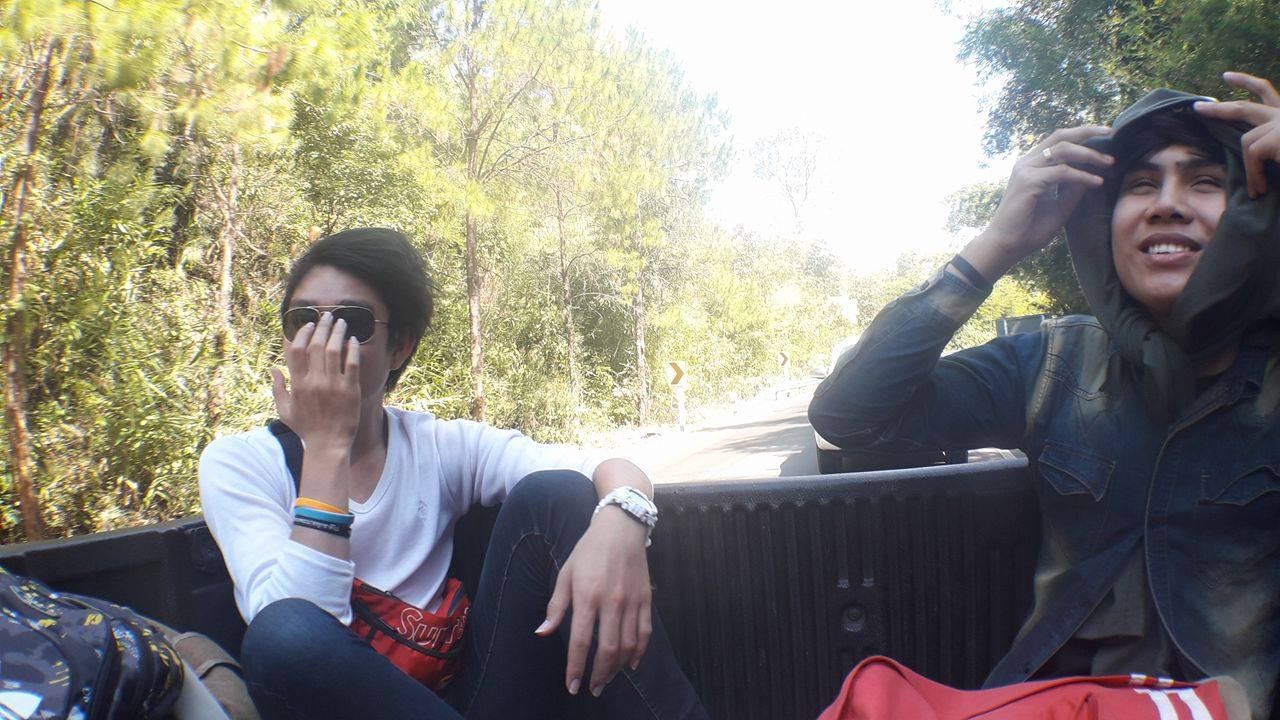 หลังจากที่เราถึงบขส.เลย ประมาณ12:30 เราก็ตั้งใจว่าจะมีรถโดยสารไปถึงห้วยกะทิงซึ่งมันไม่มี นั่งกลุ้มกันอยู่นานก็เลยตัดสินใจเหมารถกระบะในราคา 700บาท หลังจากตกลงราคาเสร็จแล้วเราก็มุ่งหน้าสู่ห้วยกะทิงกัน (ค่าเหมารถคนล่ะ140บาท)