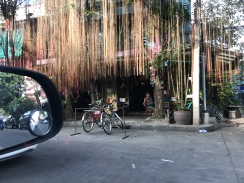 เกสท์เฮ้าส์ ตั้ง โต๊ะเก้าอี้ เอาแผงกั้นมากั้น กันรถ ทำเป็นที่จอดจักรยาน ขนาดนี้ เจ้าหน้าที่ก็ผ่านไปผ่าน มา