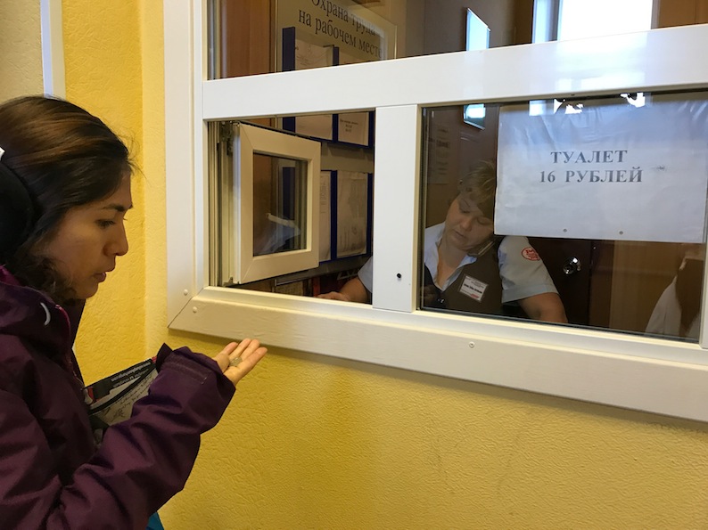 สถานีนี้รถจอดพักยาวจนถึงบ่าย 3 ก็เลยลงไปเข้าห้องน้ำ ค่าเข้า 16 รูเบิล ห้องน้ำสกปรกและเหม็นมาก (สไตล์ห้องน้ำเหมือนของจีนอ่ะ ส้วมซึม)