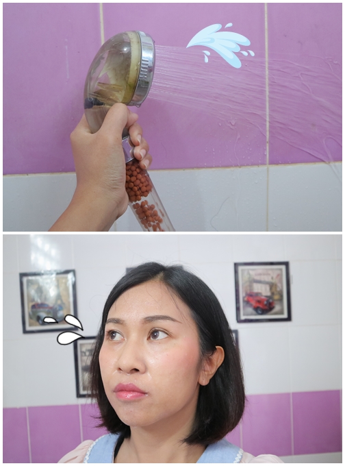 มาทดสอบประสิทธิภาพกันน้ำกันเหงื่อกันค่ะ ในรูปล่างคือหลังจากเราใช้ฝักบัวฉีดที่หน้าดูค่ะ