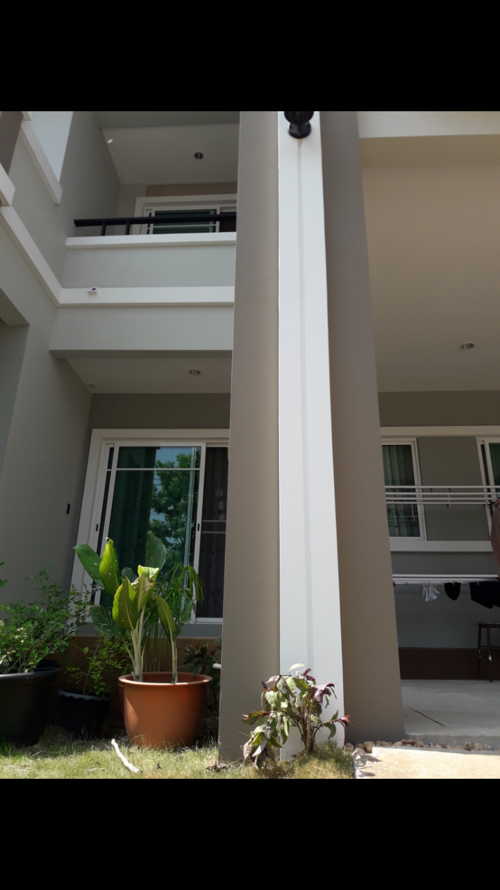 มารบกวนเพื่อนสมาชิกอีกแล้วนะครับ สืบเนื่องจากกำลังหาที่อยู่ใหม่ วันนี้ได้ไปดูหลังนี้มา อายุประมาณ 11-12 ปี พื้นรอบบ้านทรุดพอสมควร บ้านเป็นผนังพรีแคสต์ แต่ไม่แน่ใจว่าเสาด้านหลังตรงนี้คือยังไง ละมันร้าว